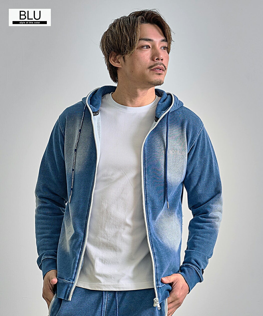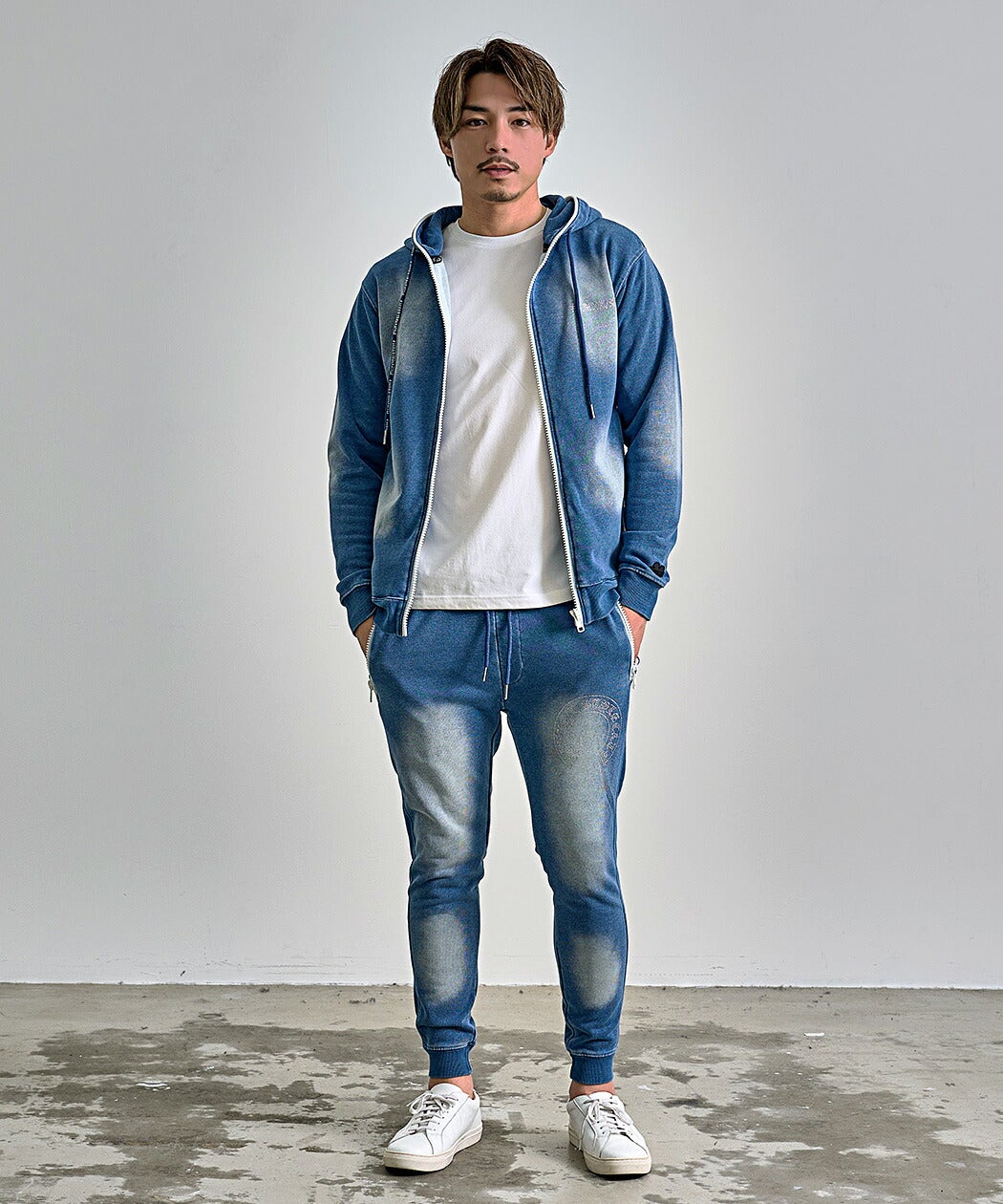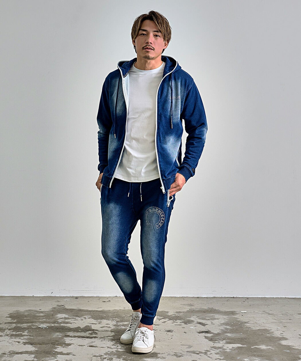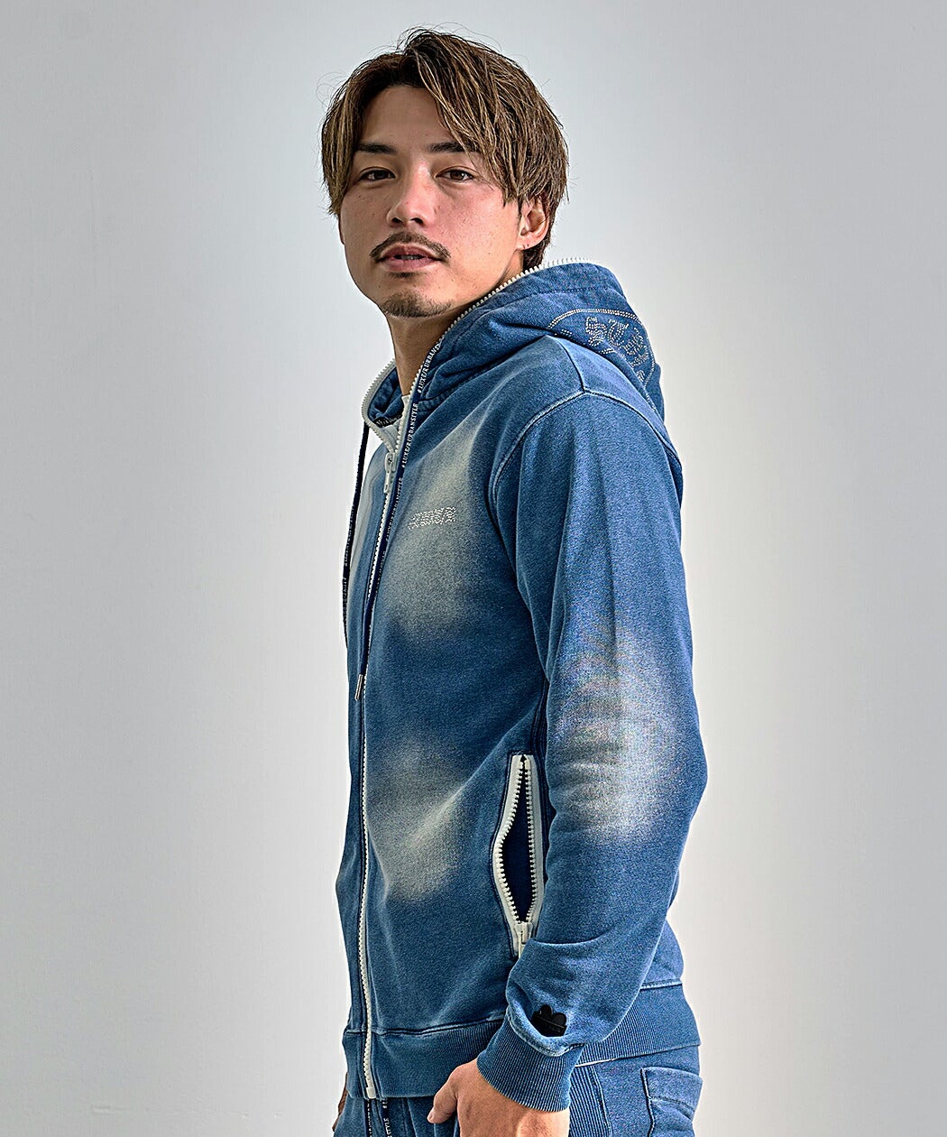 LUXE/R【ラグジュ】ラインストーンロゴカットデニムジップパーカー/全2色パーカー