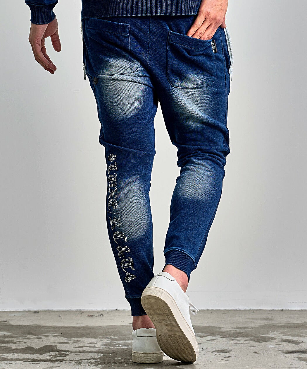 LUXE/R【ラグジュ】ラインストーンロゴカットデニムパンツ/全2色