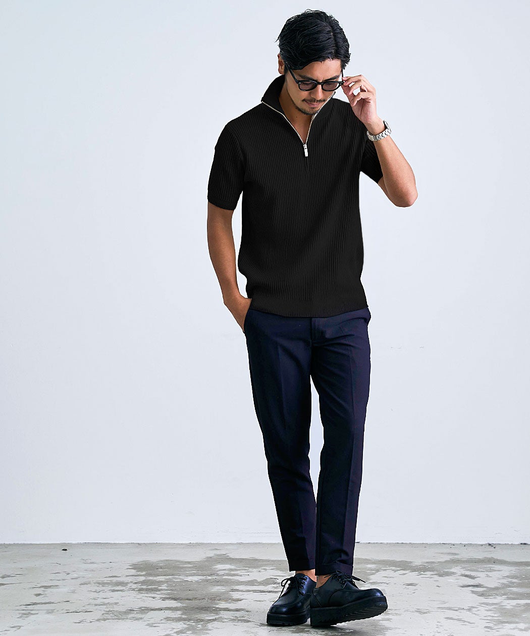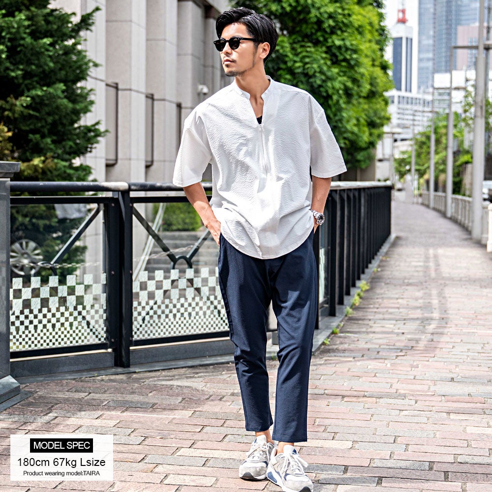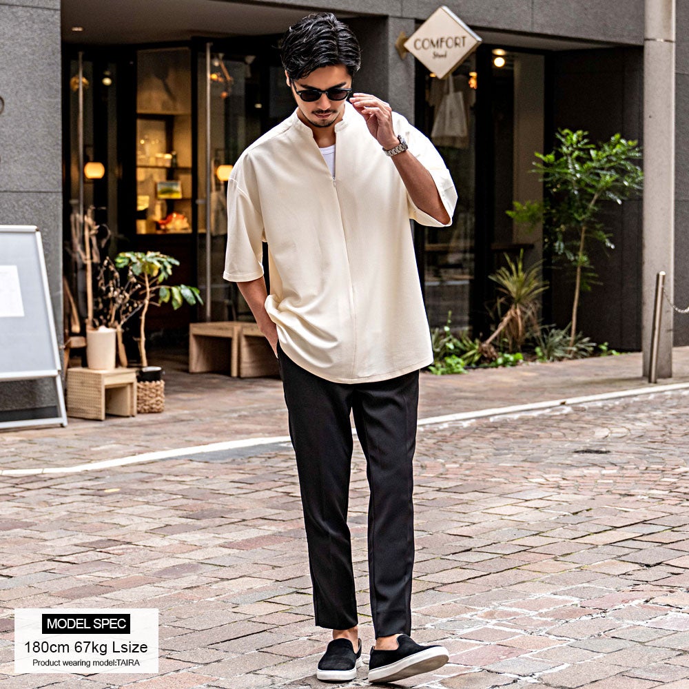 C.V.R.A【シーブイアールエー】別注ロゴ刺繍入り半袖Tシャツ×止水ジップショーツセットアップ/全2色