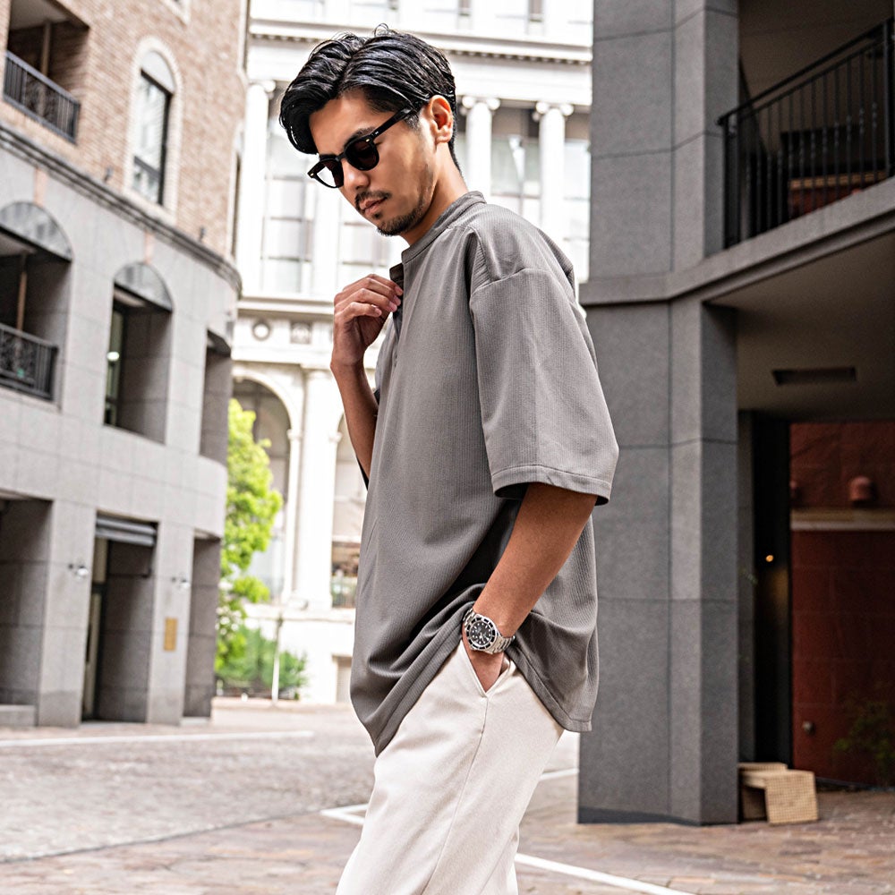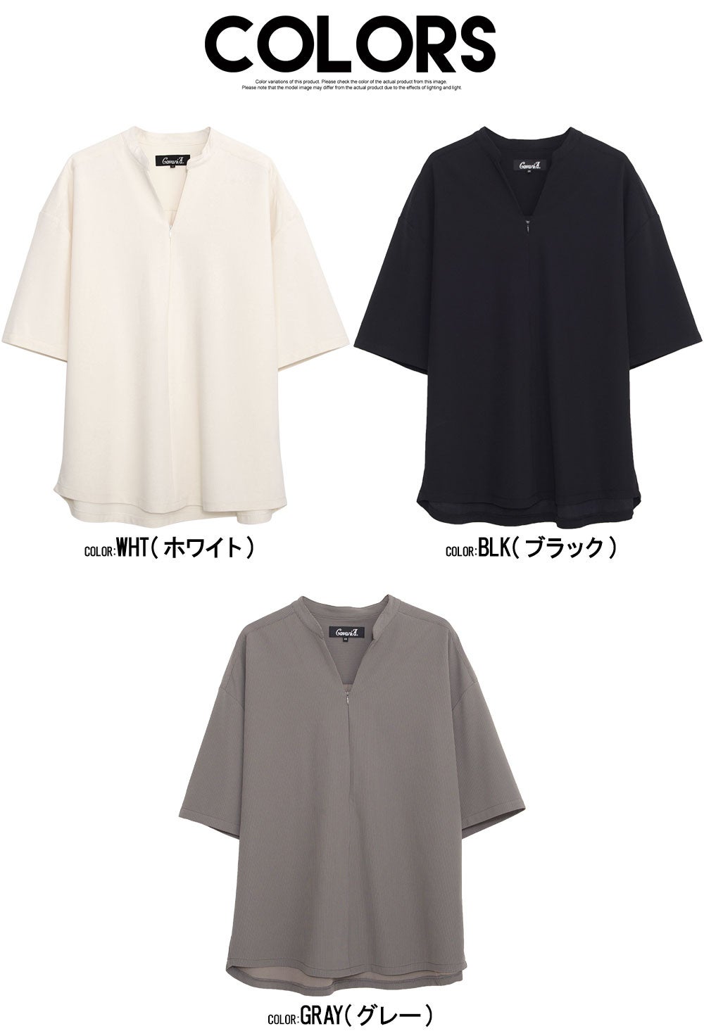 CavariA【キャバリア】キーネックスラブ半袖Tシャツ/全2色