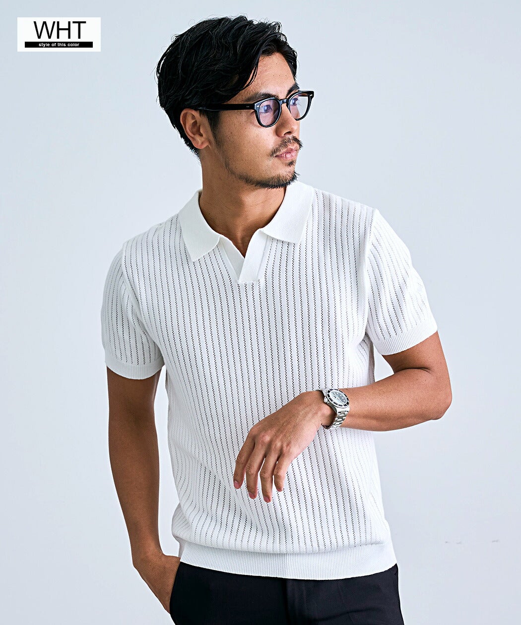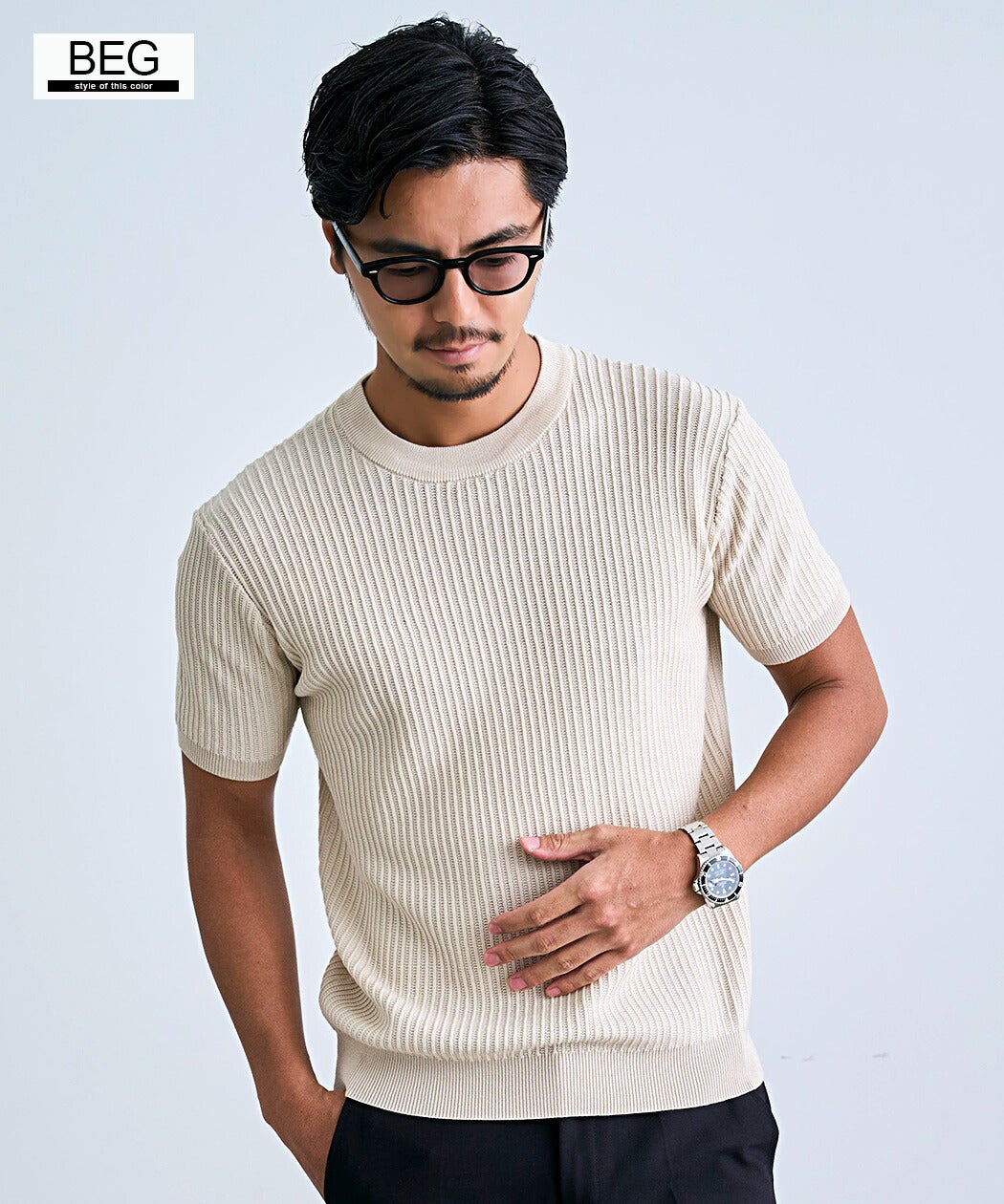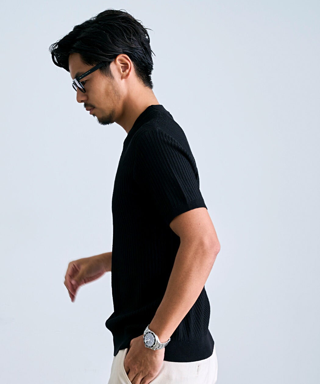 CavariA【キャバリア】接触冷感ウォッシャブルVネック半袖ニット/全7色