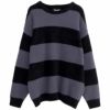 ニット メンズ セーター おしゃれ ボーダー柄 フェザーヤーン ふわふわ ふわもこ 暖かい あったか ビッグシルエット オーバーサイズ ゆったり 大きいサイズ ユニセックス クルーネック ブラック ホワイト チャコール レッド ブルー 黒 白 赤 青 M L CavariA キャバリア ブランド カジュアル ストリート系 シンプル ストリートファッション 韓国 韓国系 韓国ファッション 下北沢 下北系 古着 古着系 90s 90年代 2000年代 Y2K 大人 オシャレ 男性 父の日ギフト プレゼント 誕生日 記念日 贈り物 ギフト フェザーセーター ビッグシルエットニット ゆるニット メンズファッション モード系 秋冬ニット トレンドセーター カジュアルニット ルーズシルエット レイヤードスタイル メンズニットトップス