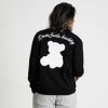 フロントとバッグに施されたインパクトのあるクマのPUアップリケと刺繍が遊び心と可愛らしさをプラス。