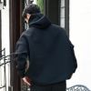 立体的に立ち上がるハイネックフードがスタイリッシュな印象を演出し、顔まわりをすっきり見せる効果も。