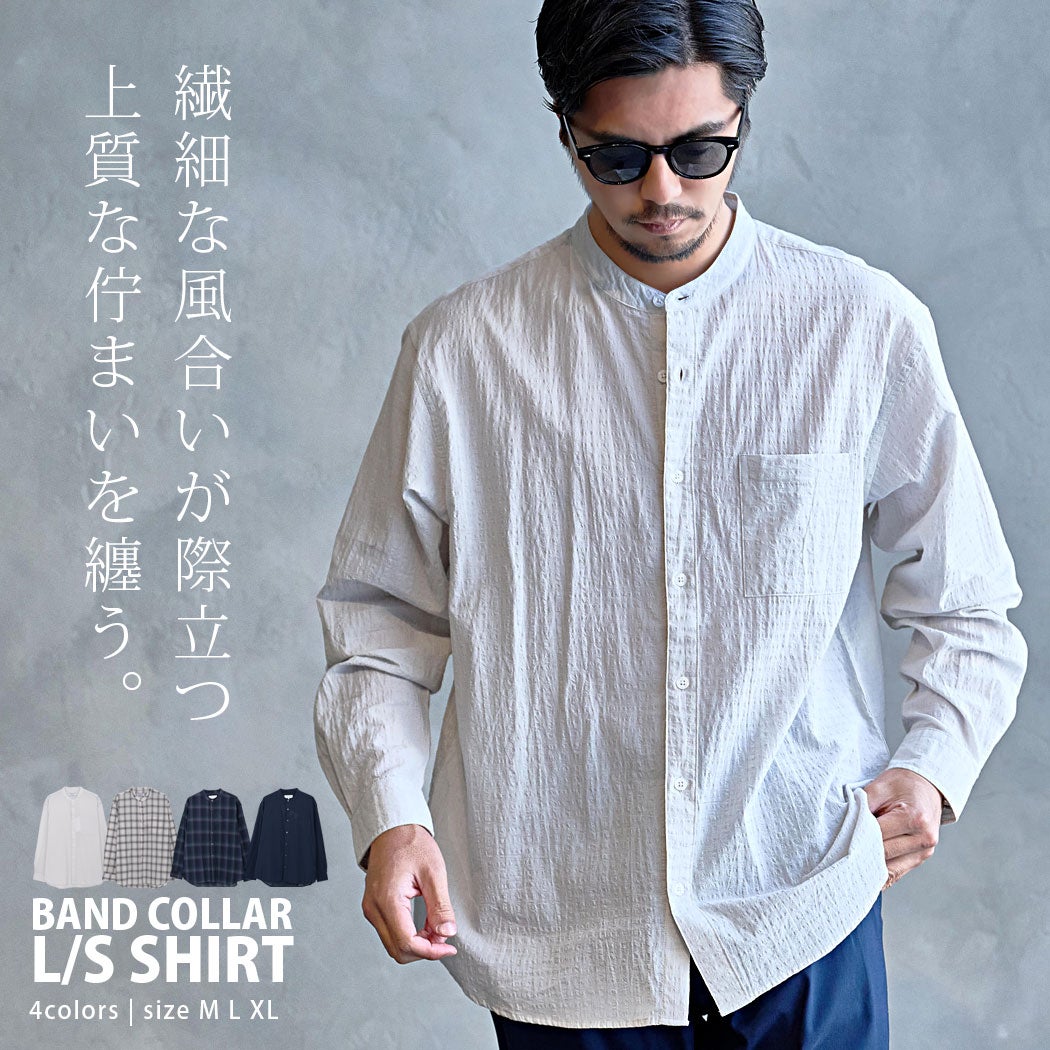 TIMBRE POSTE【タンブルポステ】テクスチャーバンドカラー長袖シャツ/全4色