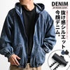 ヴィンテージ感のあるウォッシュ加工を施したデニム生地を使用した、フード付きジップパーカー。