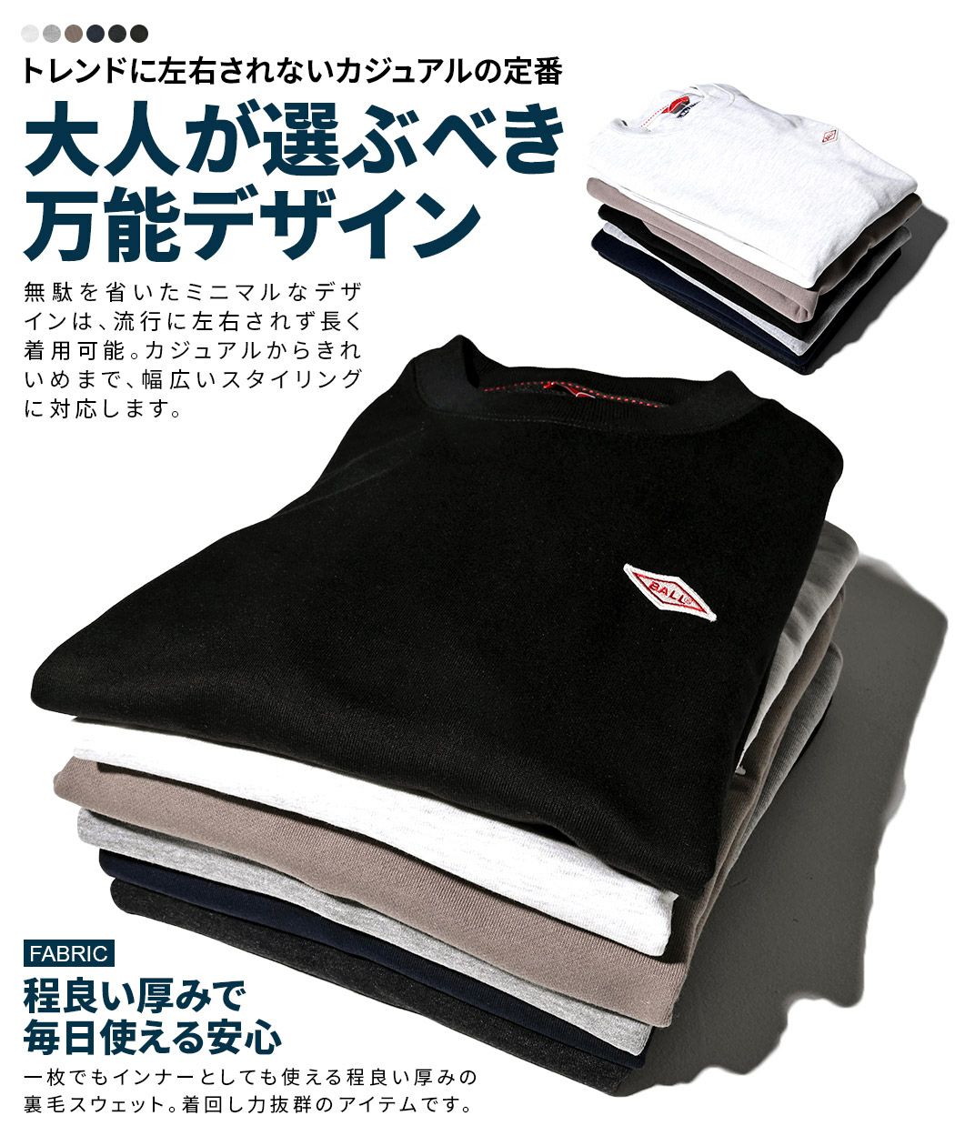 BALL【ボール】T/C裏毛ワッペン付きトレーナー/全6色トレーナー