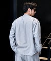 首元は無駄を削ぎ落としたノーカラー仕様。