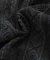 立体感のあるケーブル編みに、ムラ感のある汚し加工を施すことで、シンプルながらも奥行きのある表情に仕上げています。