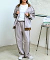 同デザインのジャケットと合わせれば、統一感のあるセットアップスタイルが完成。