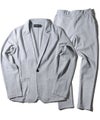 シンプルでベーシックなデザインのテーラードジャケットとイージーパンツの2点セット。
