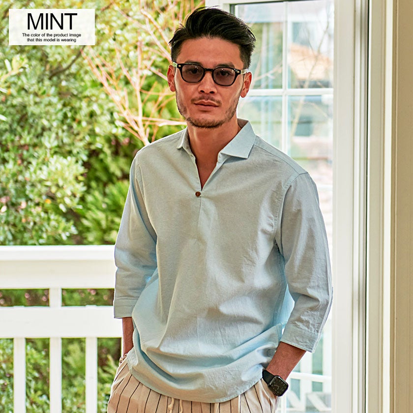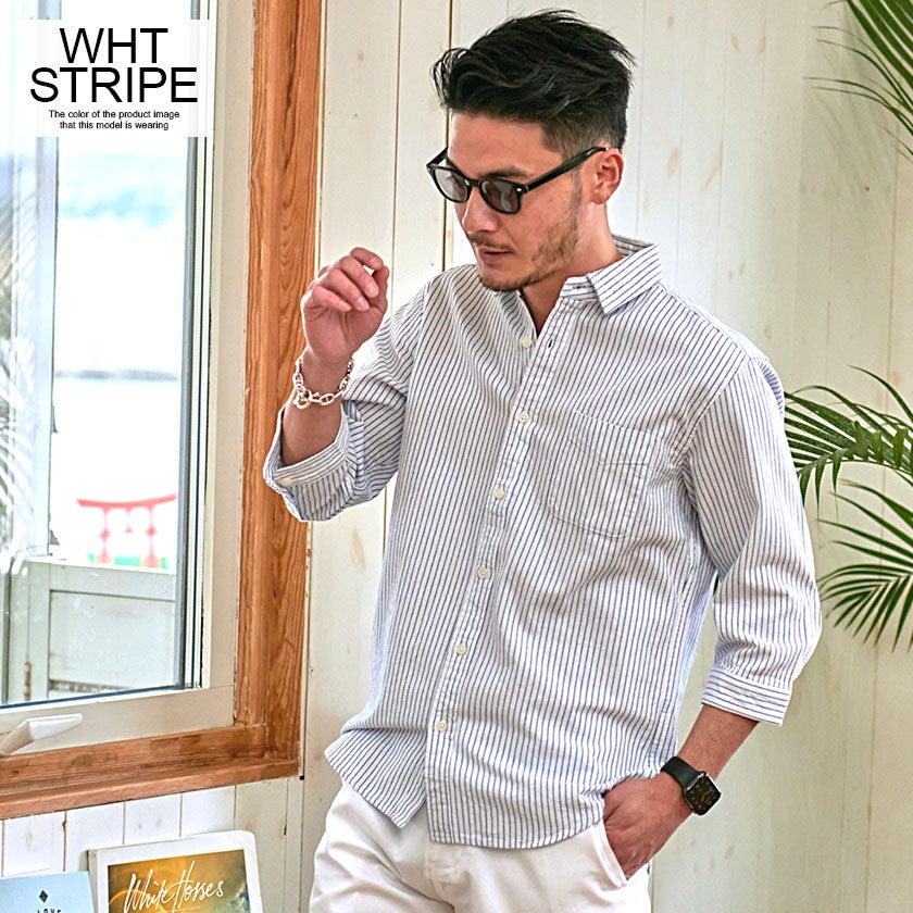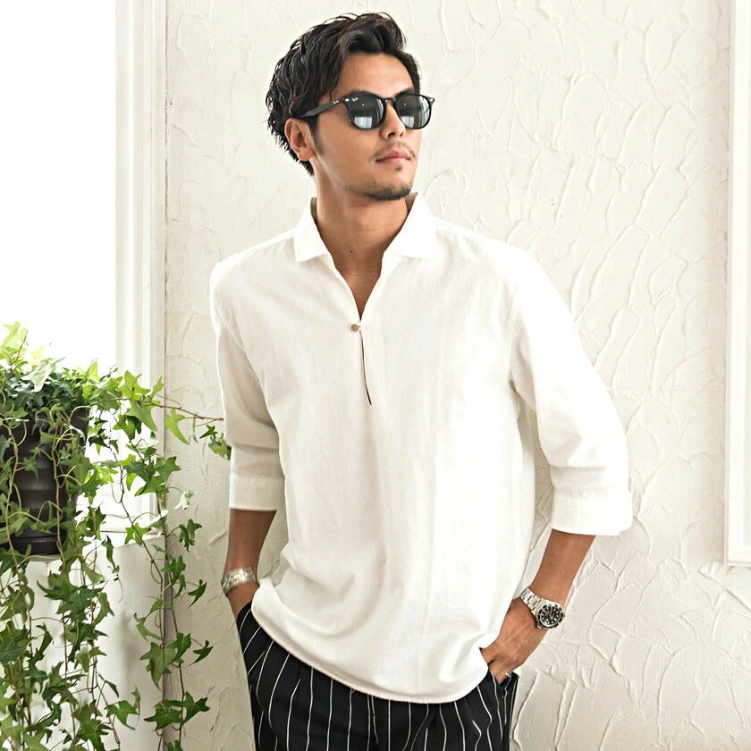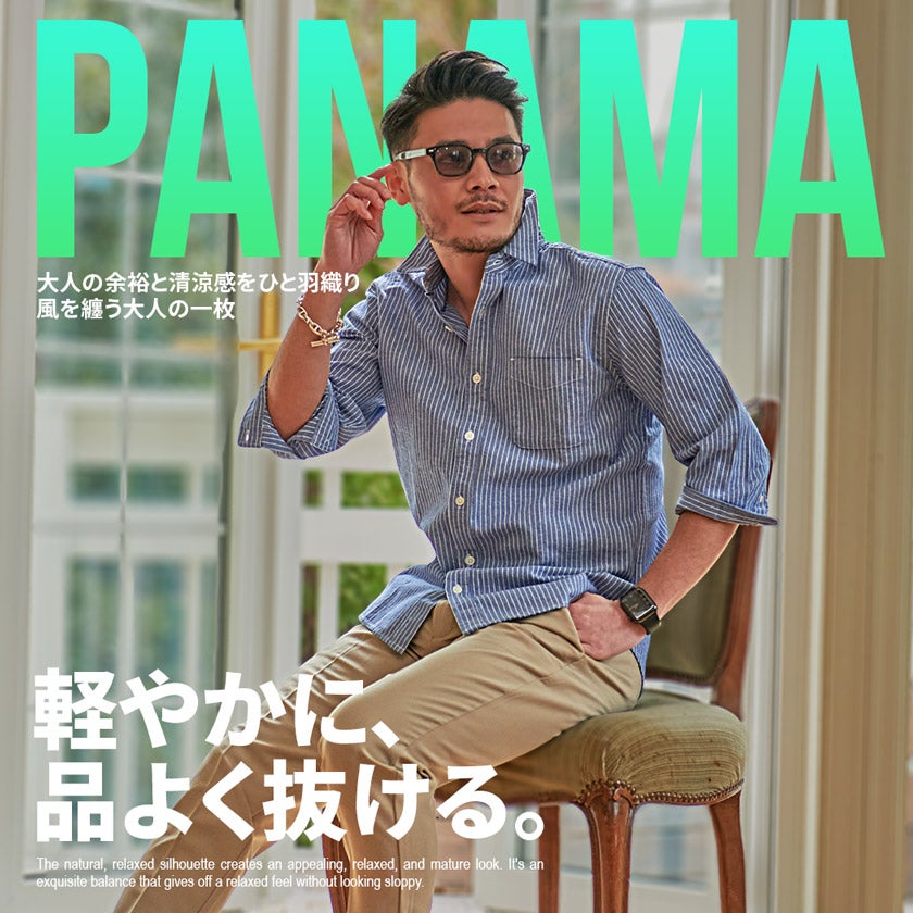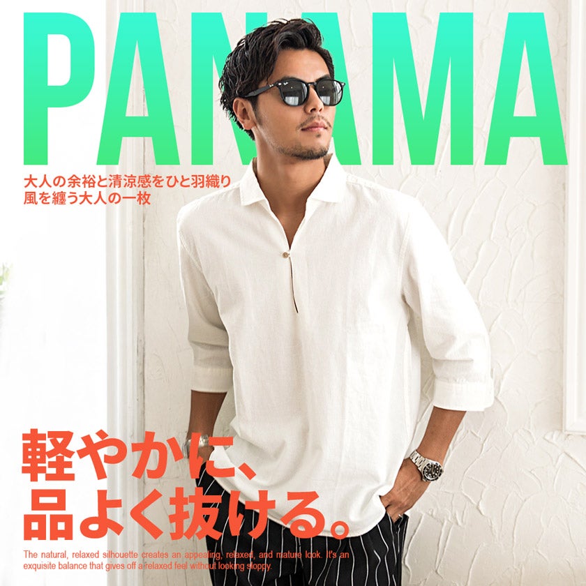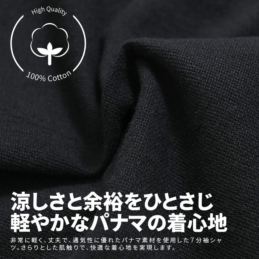 CavariA【キャバリア】パナマ織りレギュラーカラー7分袖シャツ/全10色
