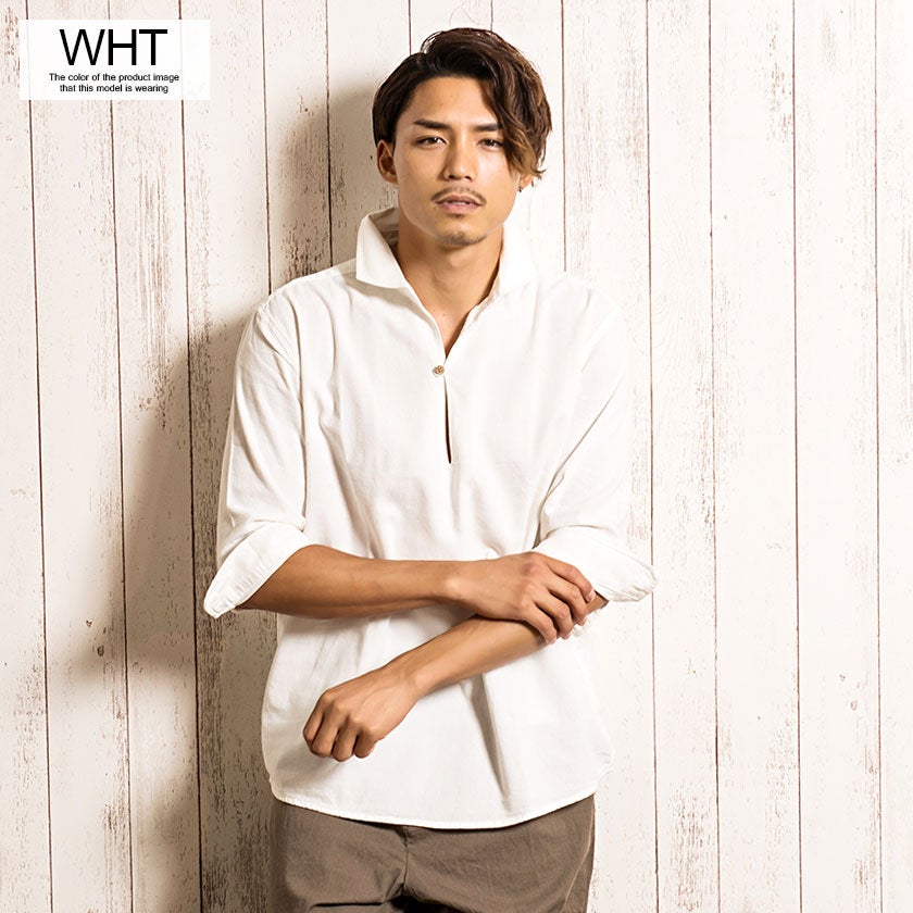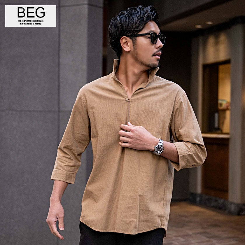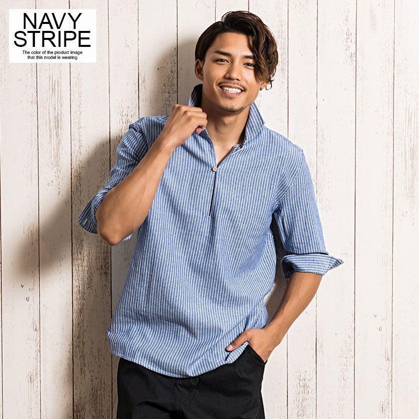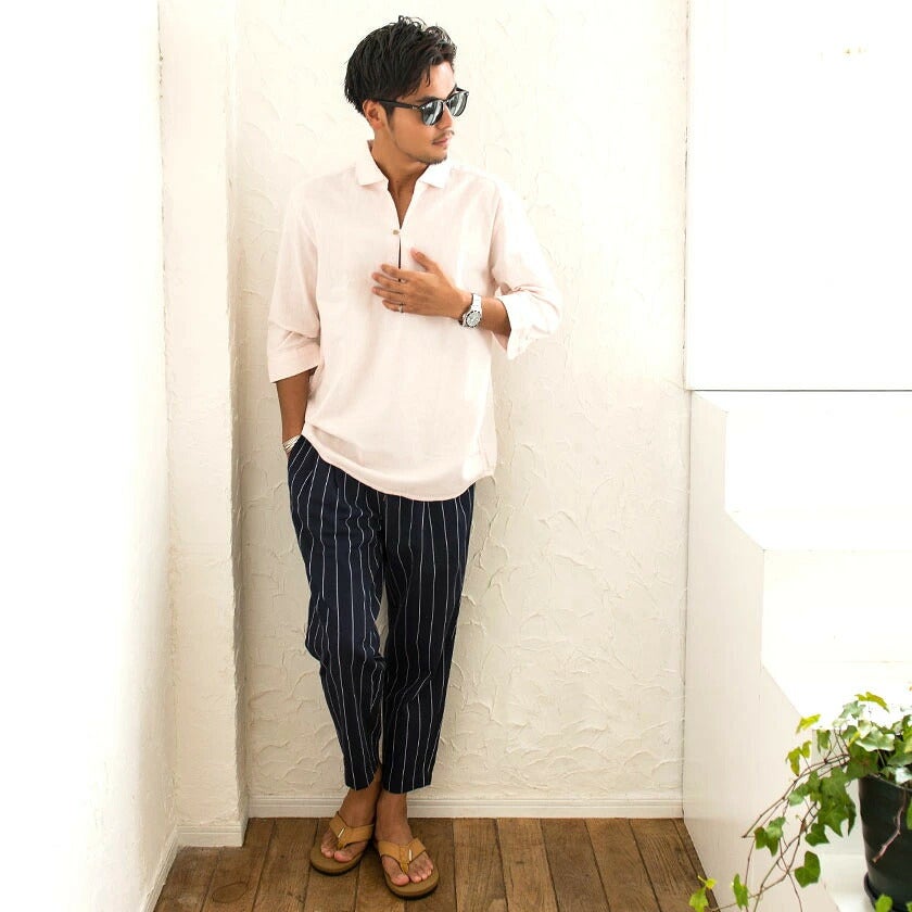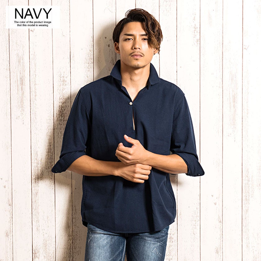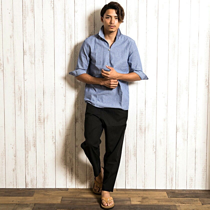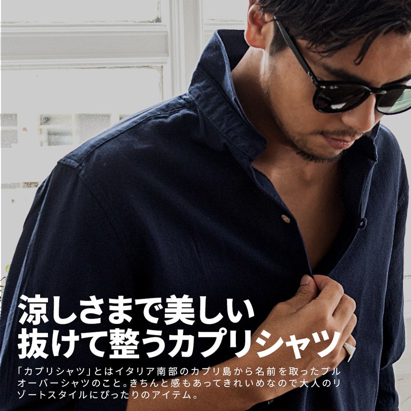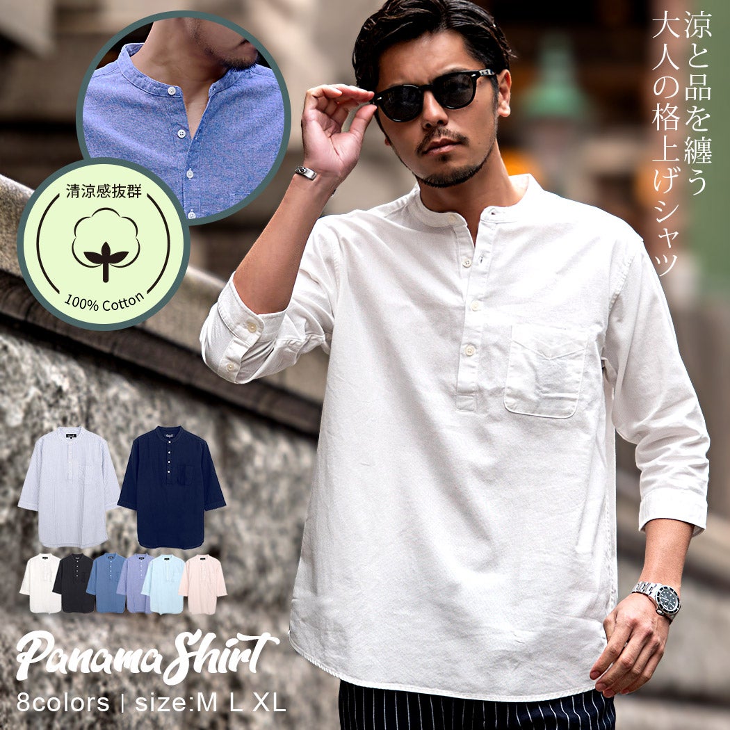 CavariA【キャバリア】パナマバンドカラーカプリ7分袖シャツ/全10色【メール便対応】