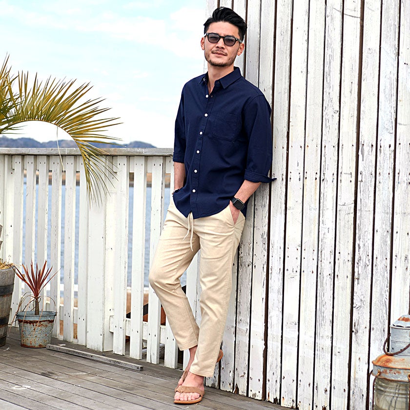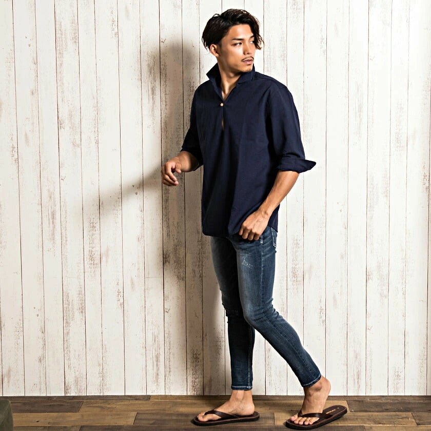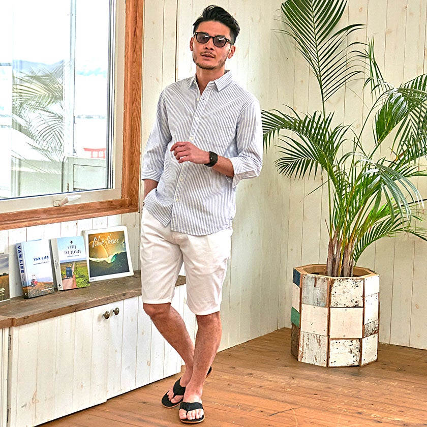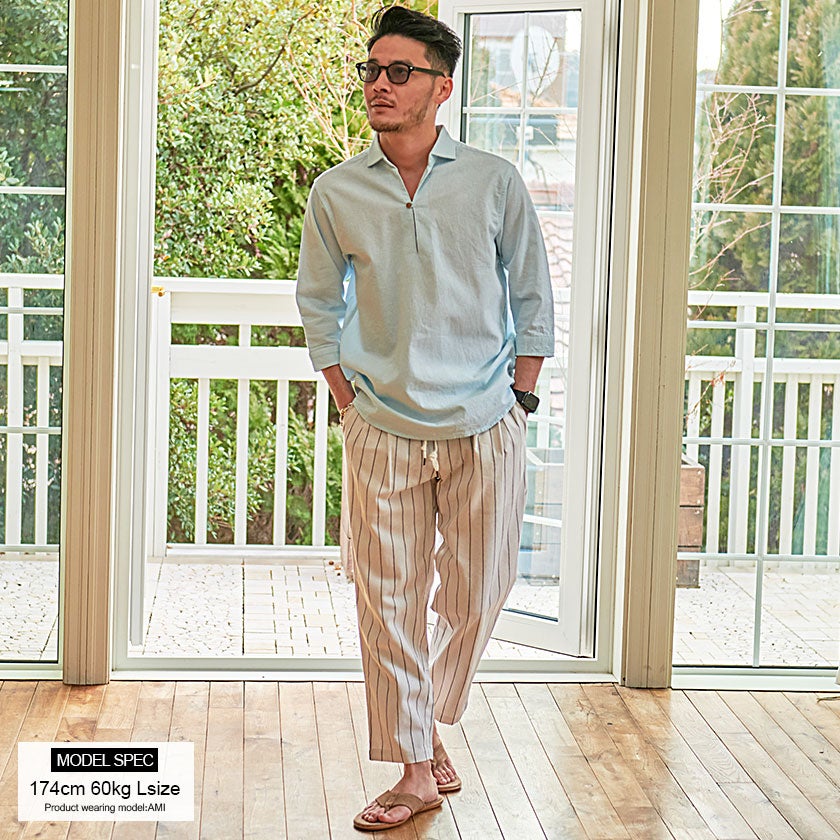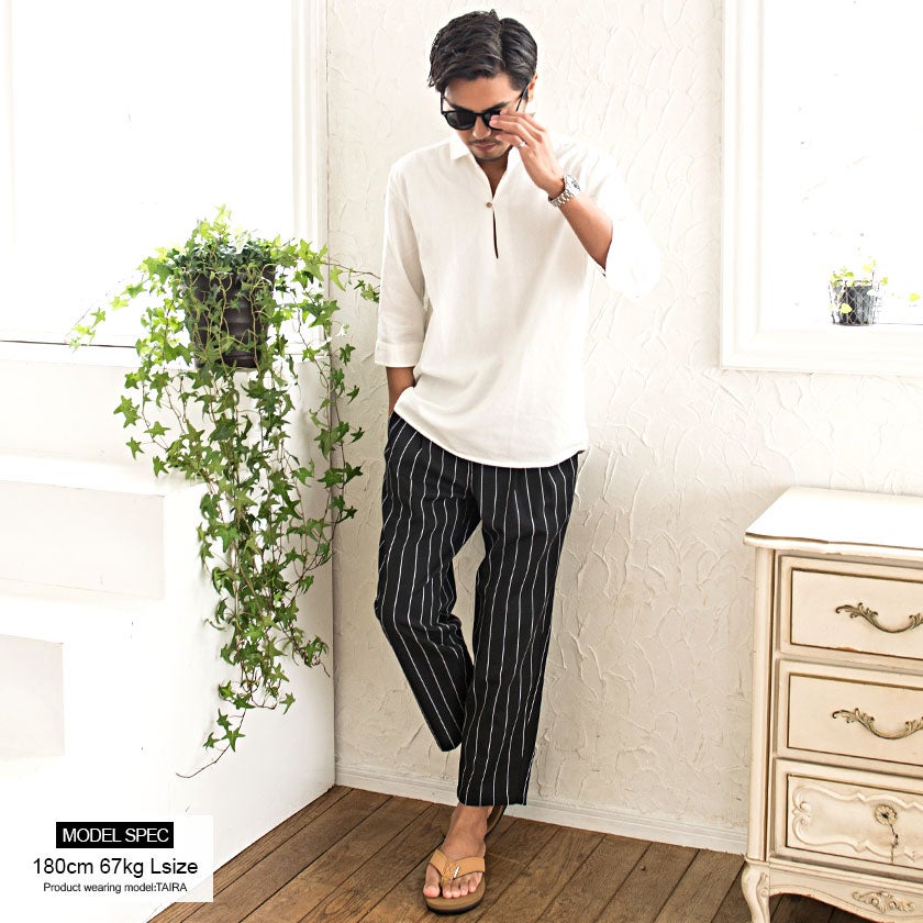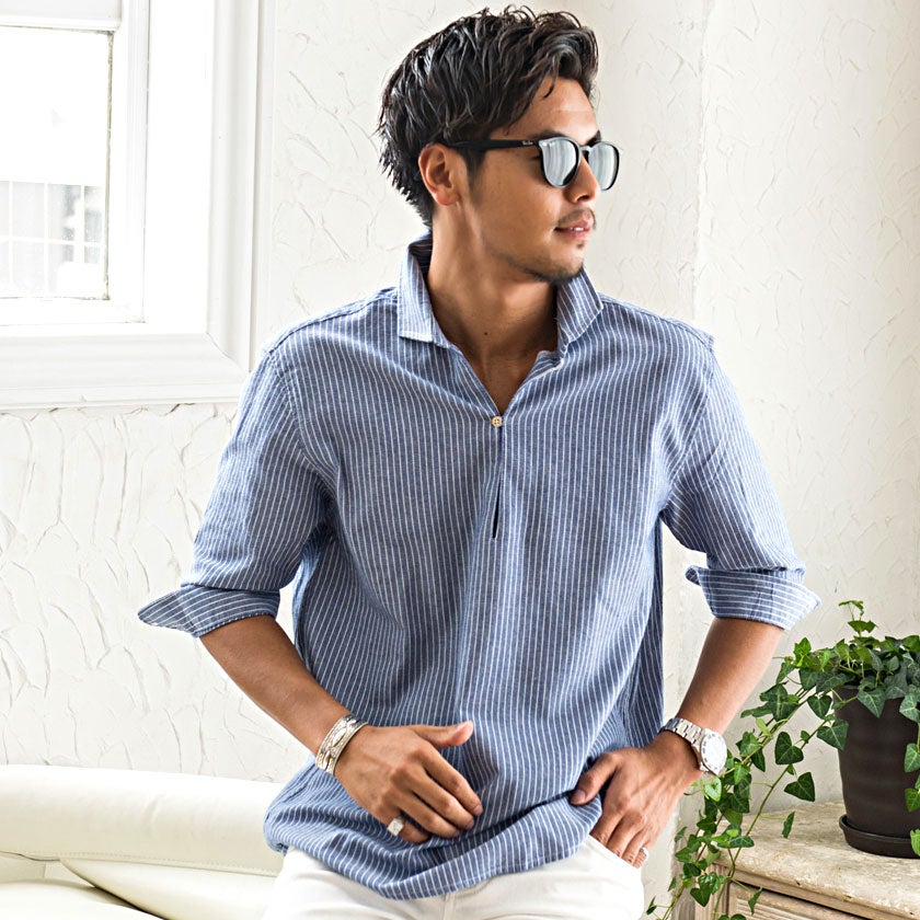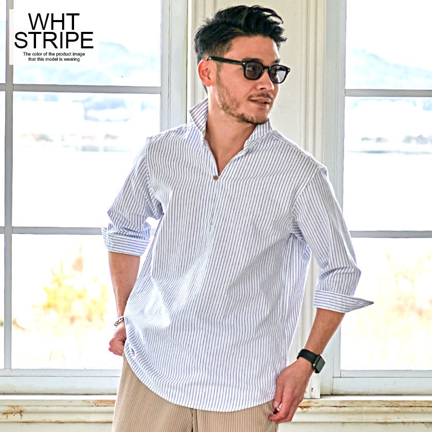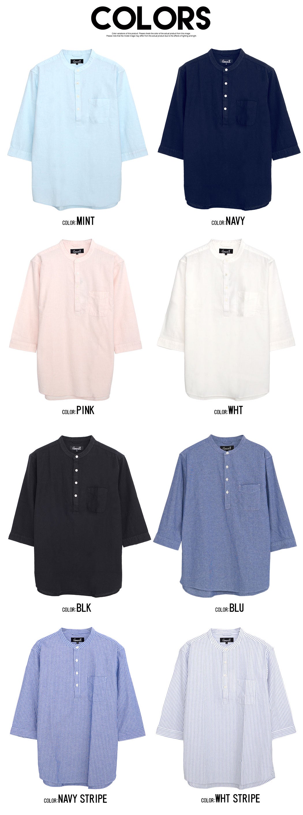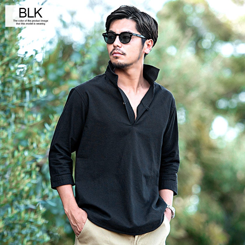 CavariA【キャバリア】パナマバンドカラーカプリ7分袖シャツ/全10色【メール便対応】