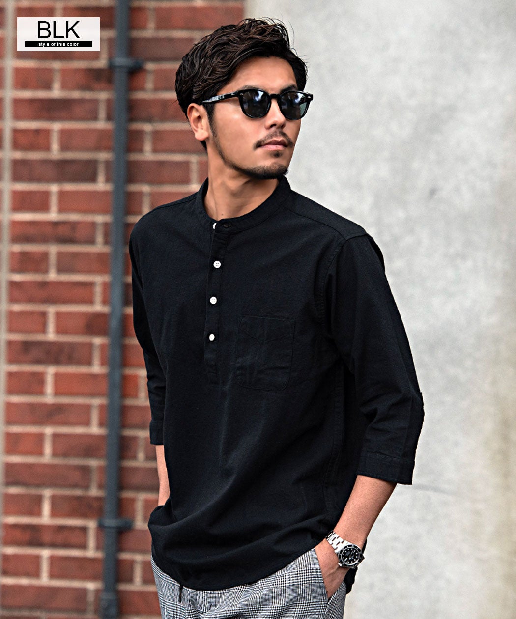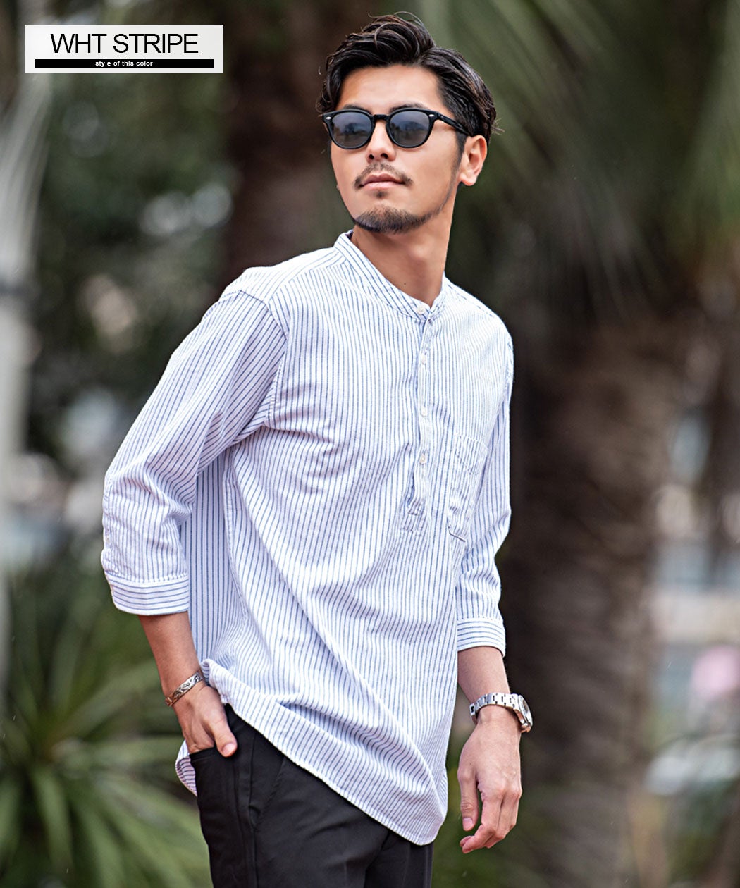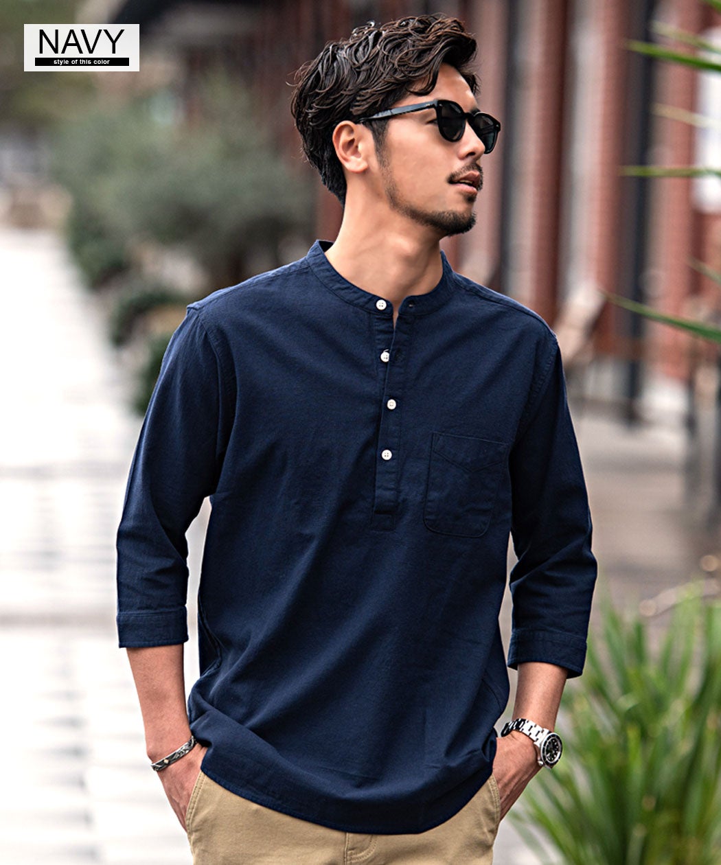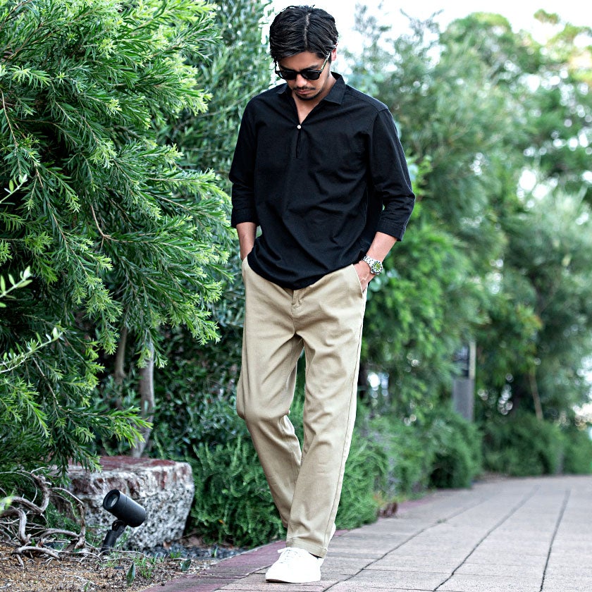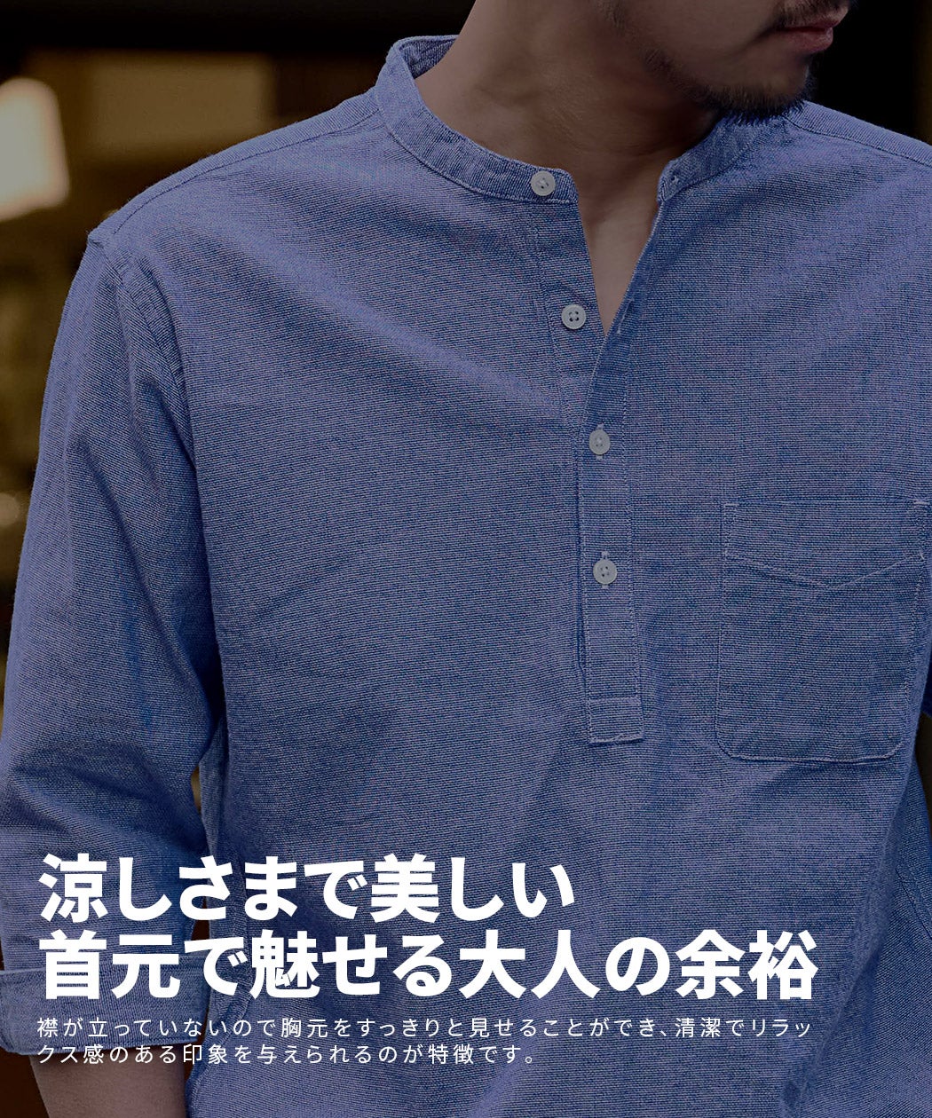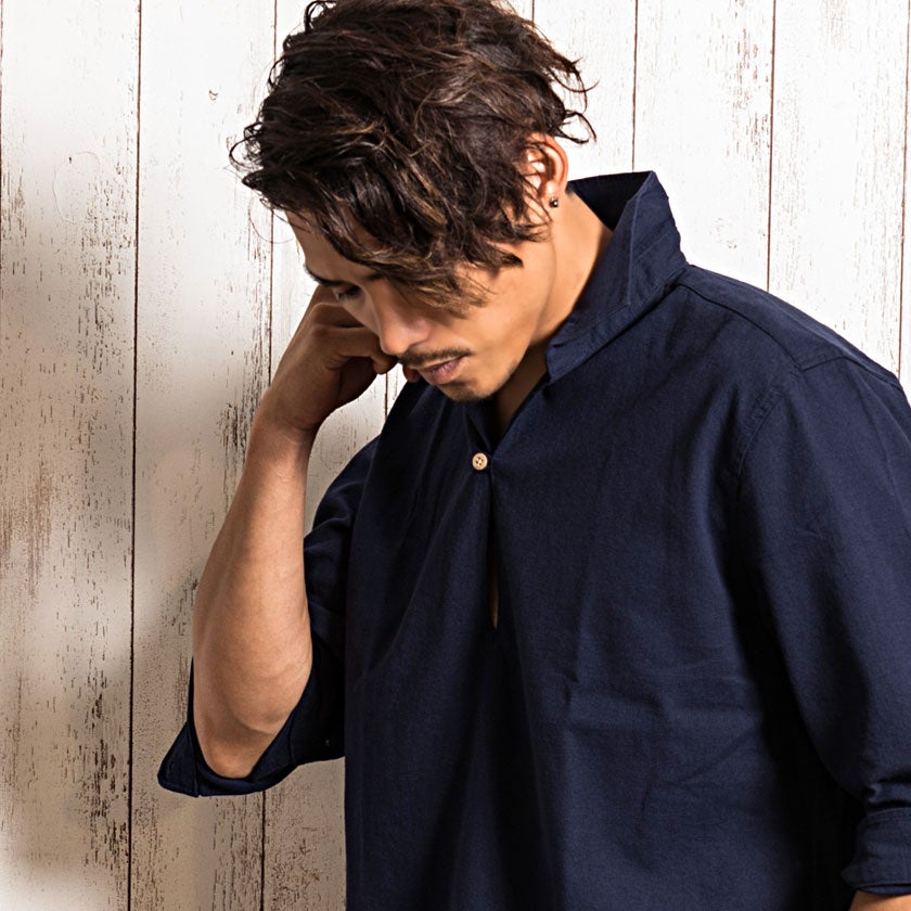 CavariA【キャバリア】パナマバンドカラーカプリ7分袖シャツ/全10色【メール便対応】