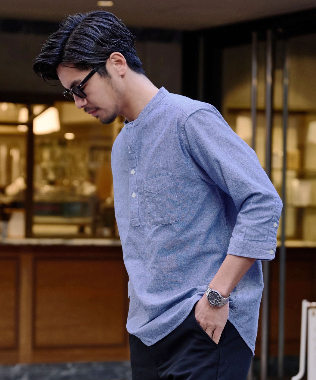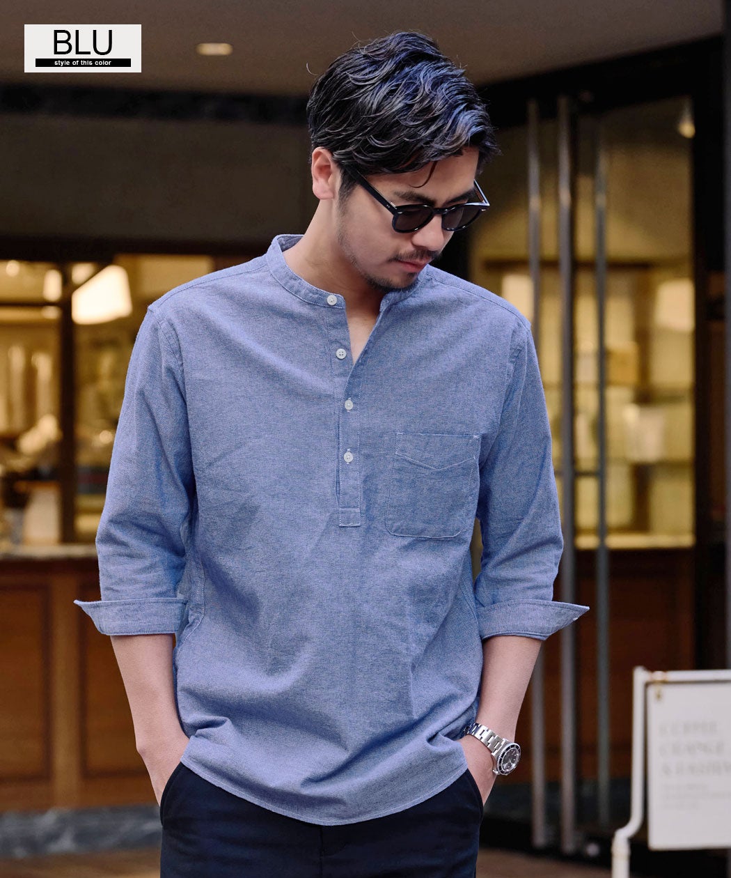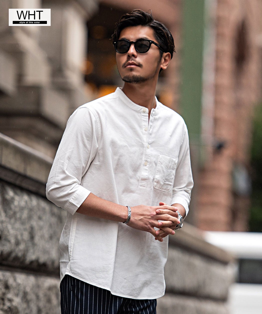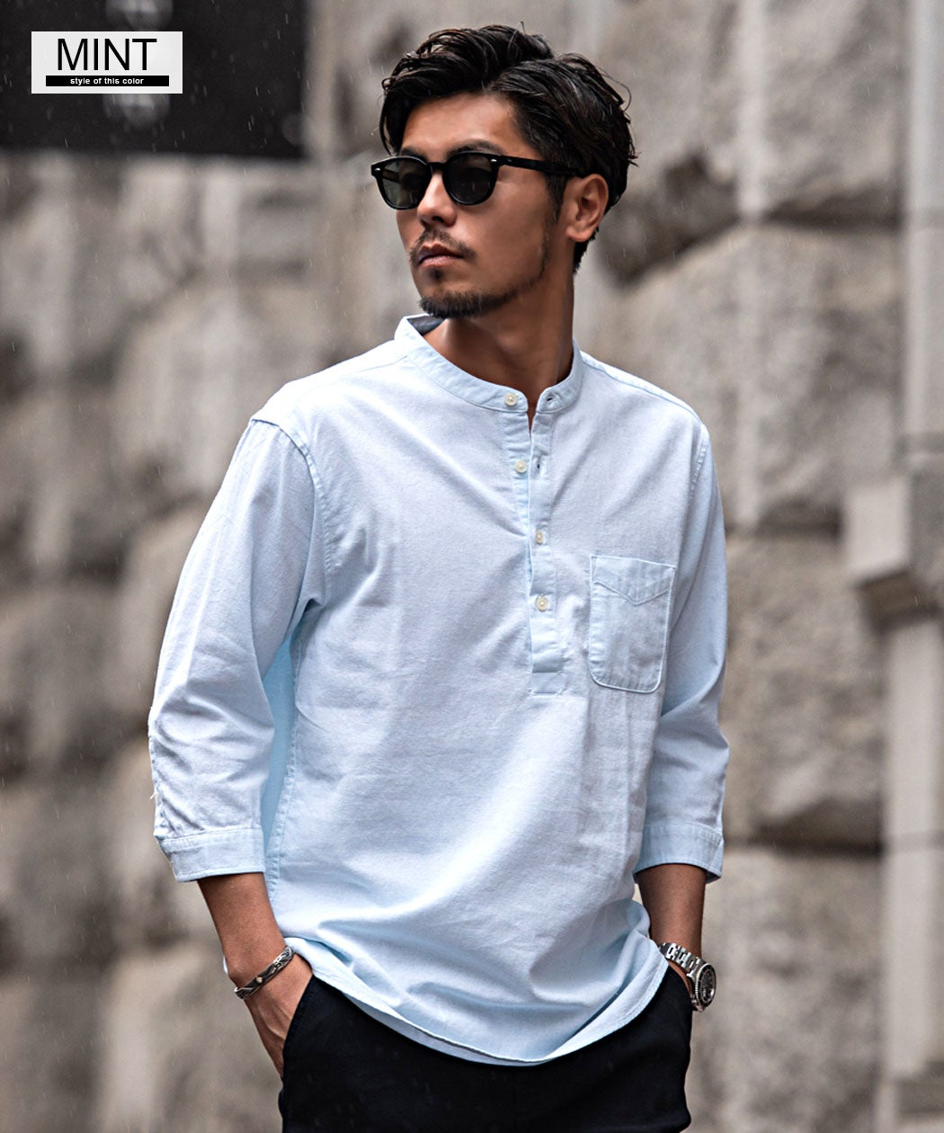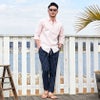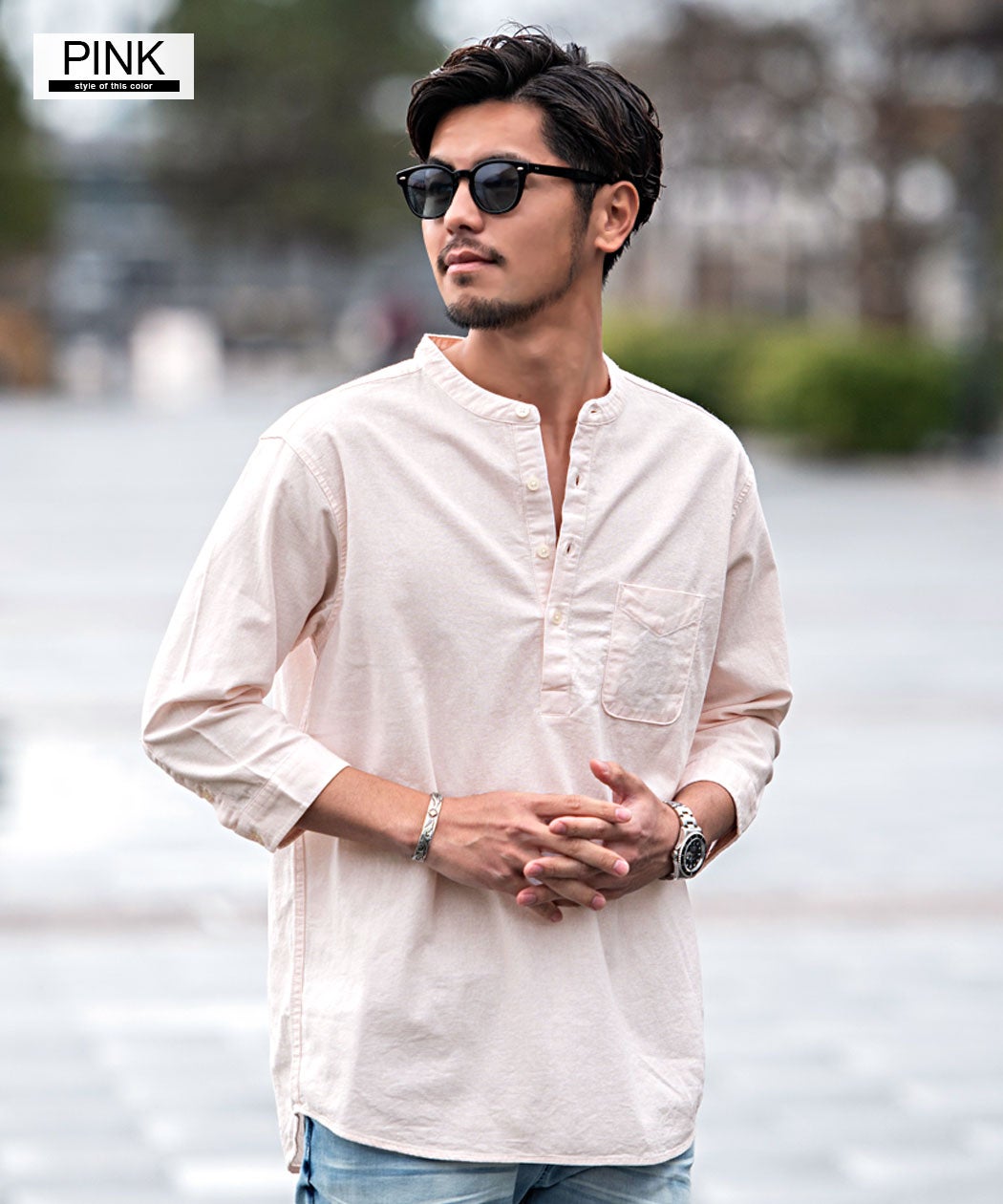 CavariA【キャバリア】パナマバンドカラーカプリ7分袖シャツ/全10色【メール便対応】