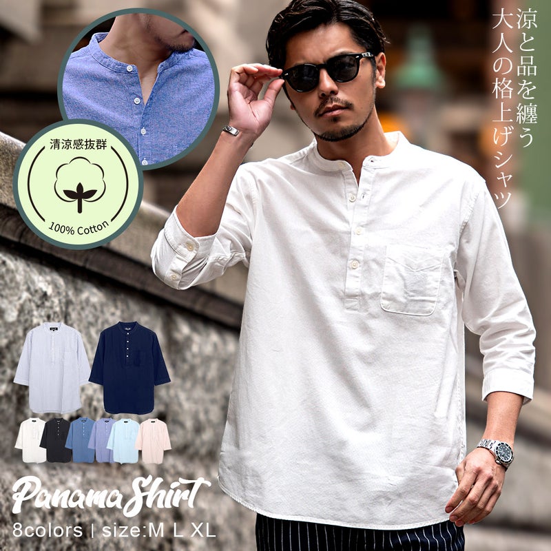 シャツ メンズ おしゃれ パナマシャツ 大人 7分袖 七分袖 7分丈 七分丈 パナマ織り 涼しい CavariA ブランド バンドカラー カプリシャツ ヘンリーネック コットン 大人 カジュアル 無地 ストライプ 白シャツ 服 父の日 春 夏 春服 夏服 ファッション ゴルフ ゴルフウェア ゴルフウエア ゴルフ用品 男性 男 父の日 父の日ギフト 父の日プレゼント 20代 30代 40代 メンズファッション 東京 プレゼント 誕生日 記念日 贈り物 ギフト