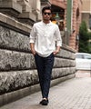 バンドカラーシャツとは、襟の形状が首元を包むように丸い帯(バンド)になっているシャツを指します。