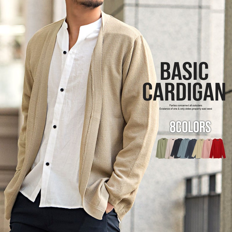 カーディガン メンズ ブランド 大人 きれいめ きれいめコーデ きれい目 きれい目コーデ シンプル カジュアル ファッション 無地 鹿の子編み 12G ボタンレス 長袖 羽織り トップス ライトアウター ブラック ブルー ネイビー ベージュ ピンク スモークグリーン オフベージュ ワイン 黒 紺 緑 M L CavariA キャバリア 父の日 春 春服 東京 プレゼント 贈り物 ギフト