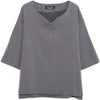V字カットのネックデザインが程よく抜け感を演出し、春夏の軽やかなスタイリングにぴったりです。