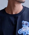 胸元に人気のベアを刺繍で施した、遊び心と可愛らしさを感じさせるクルーネックTシャツ。