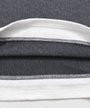 裾やネック部分には別布を使用したフェイクレイヤードデザインを施し、一枚で重ね着風スタイルが完成します。