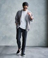カーディガンはボタンレスのミニマルデザインで、ラフに羽織れる抜け感のある仕上がり。