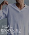 首元は胸元が程よく開いたスキッパー仕様。