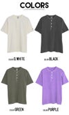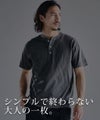 首元のボタンデザインがさりげないアクセントになる、上品なヘンリーネック仕様。