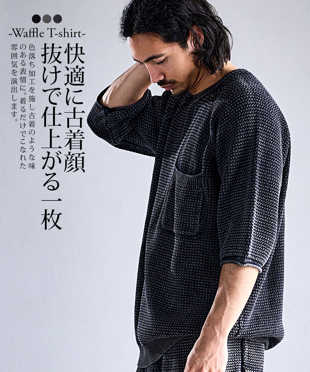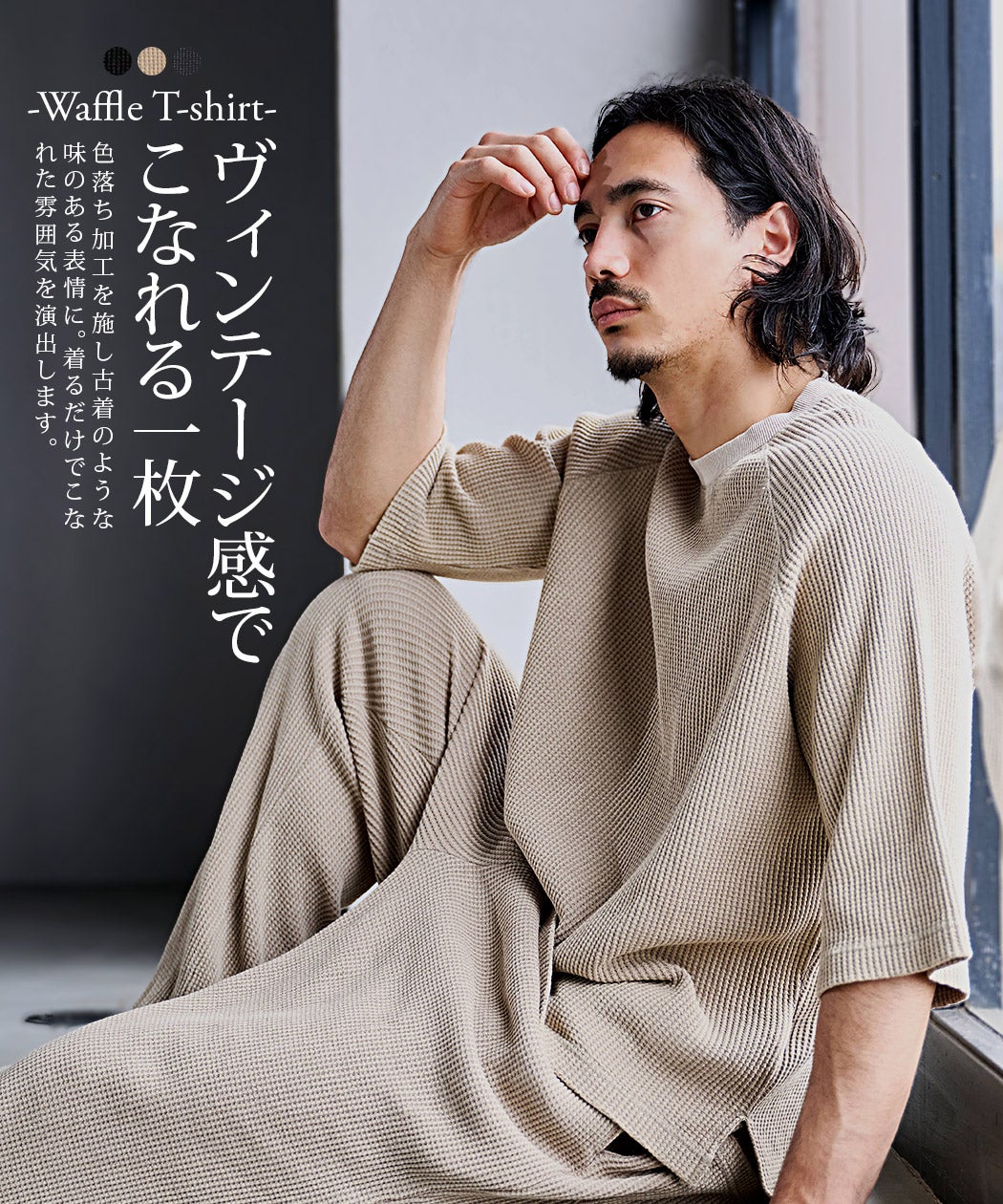 CavariA【キャバリア】ビッグワッフルSS半袖Tシャツ/全3色