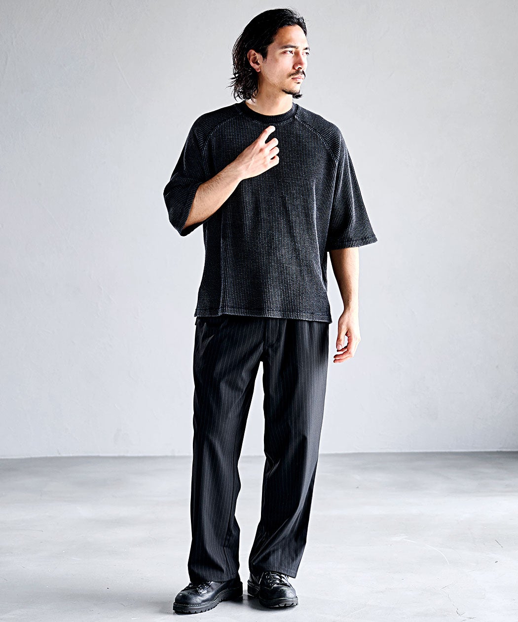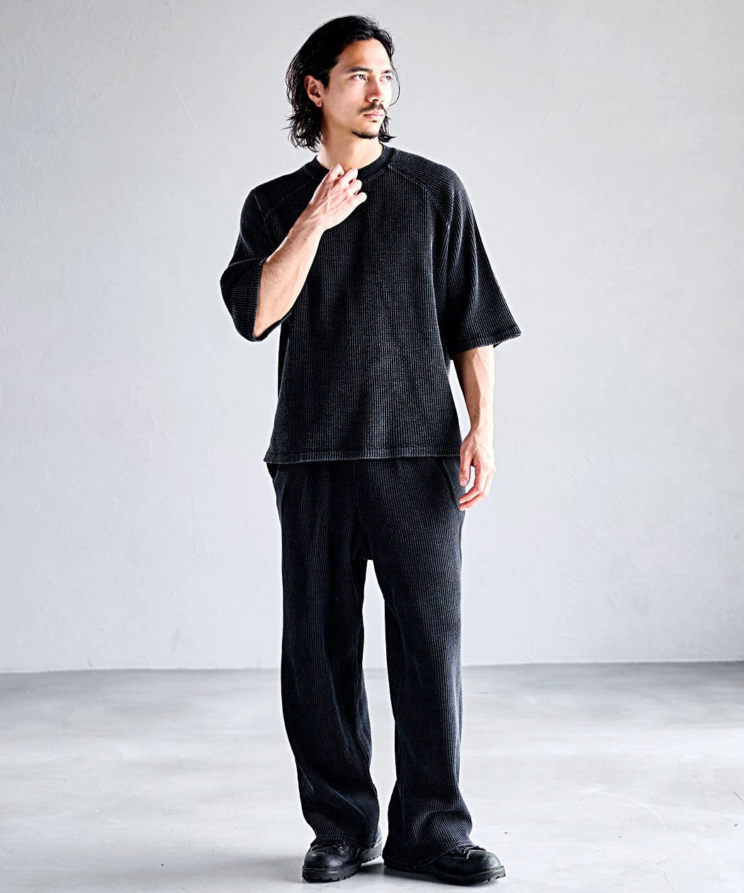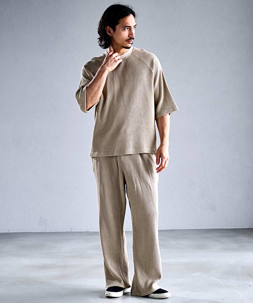 CavariA【キャバリア】ビッグワッフルワイドパンツ/全3色