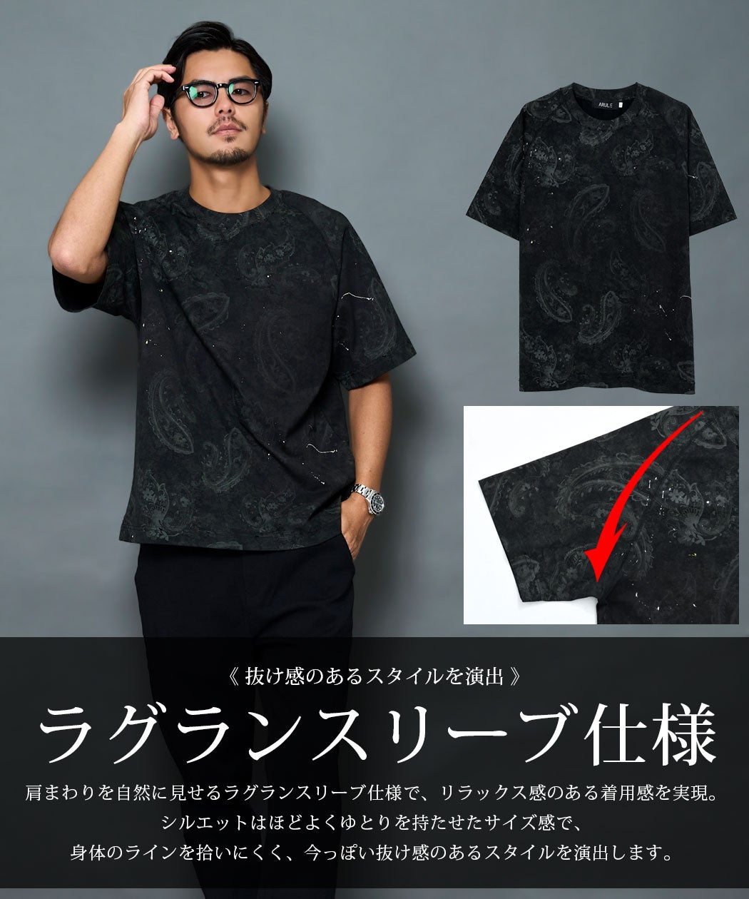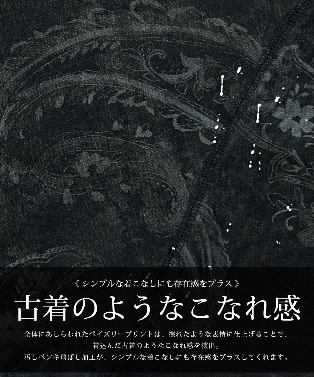 ARULE【アルール】ペイズリー汚し半袖Tシャツ/全1色