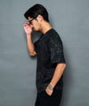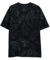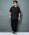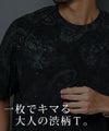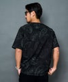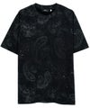 落ち着いたブラックベースにペイズリー柄を重ね、さらに擦れ感のあるプリントやペンキ飛ばし加工を施した、ヴィンテージライクな雰囲気漂う半袖Tシャツです。