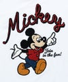 バックには立体感のあるサガラ刺繍でミッキーとロゴを表現し、存在感たっぷりの仕上がりです。