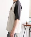 肩の切り替えが特徴のラグランスリーブ仕様で、リラックス感のあるシルエットに仕上げた一枚。