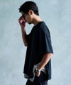 シンプルな無地Tに見えて、裾から覗くメッシュ素材がアクセントになったデザインです。