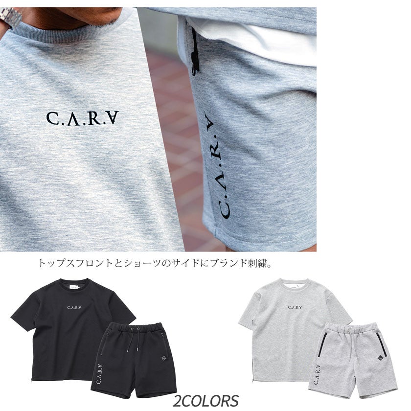 C.V.R.A【シーブイアールエー】別注ロゴ刺繍入り半袖Tシャツ×止水ジップショーツセットアップ/全2色