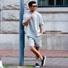 サイドジップが付いたTシャツはデザイン性と動きやすさを兼ね備え、細身のショーツはブランドラバーロゴと刺繍のみのシンプルデザイン。
