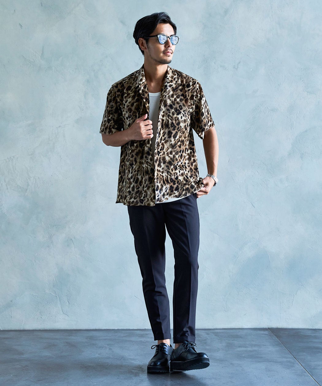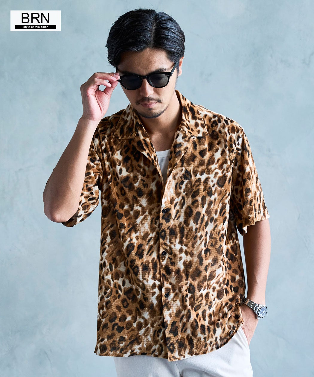CavariA【キャバリア】ヒョウ柄オープンカラーシャツ/全3色