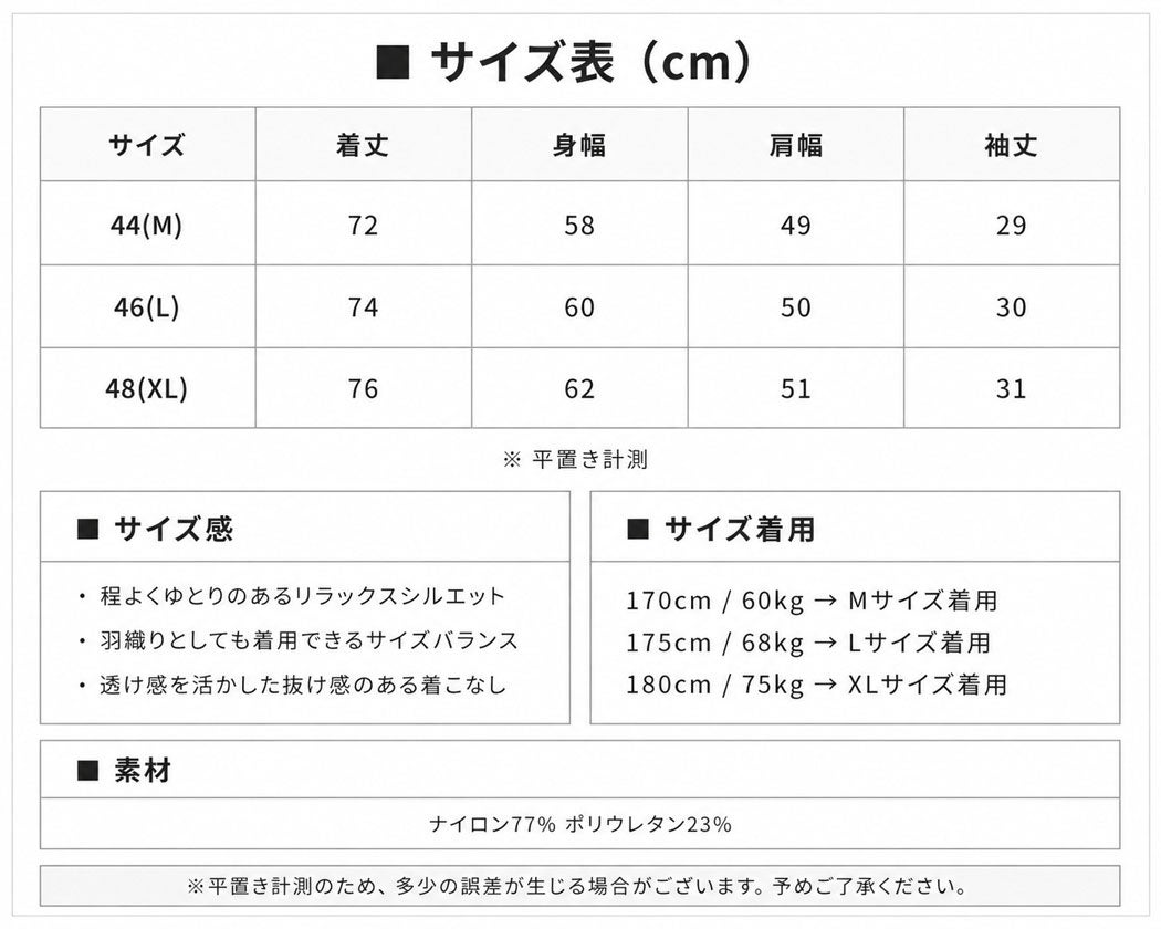 CavariA【キャバリア】ジャケット専用半袖Tシャツ/全3色