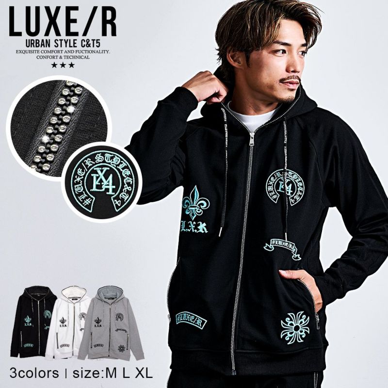 SILVER BULLET(シルバーバレット)にLUXE/R【ラグジュ】ラインストーンジップ刺繍パーカーが入荷しました。