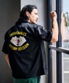 存在感あふれるバック刺繍が目を惹く、夏の主役級半袖シャツです。