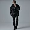複雑な切り替えデザインや裾の切りっぱなし、厚塗りのグリッター加工を加えることでグランジ感を表現した厚手デニムを使ったジャケットが登場。