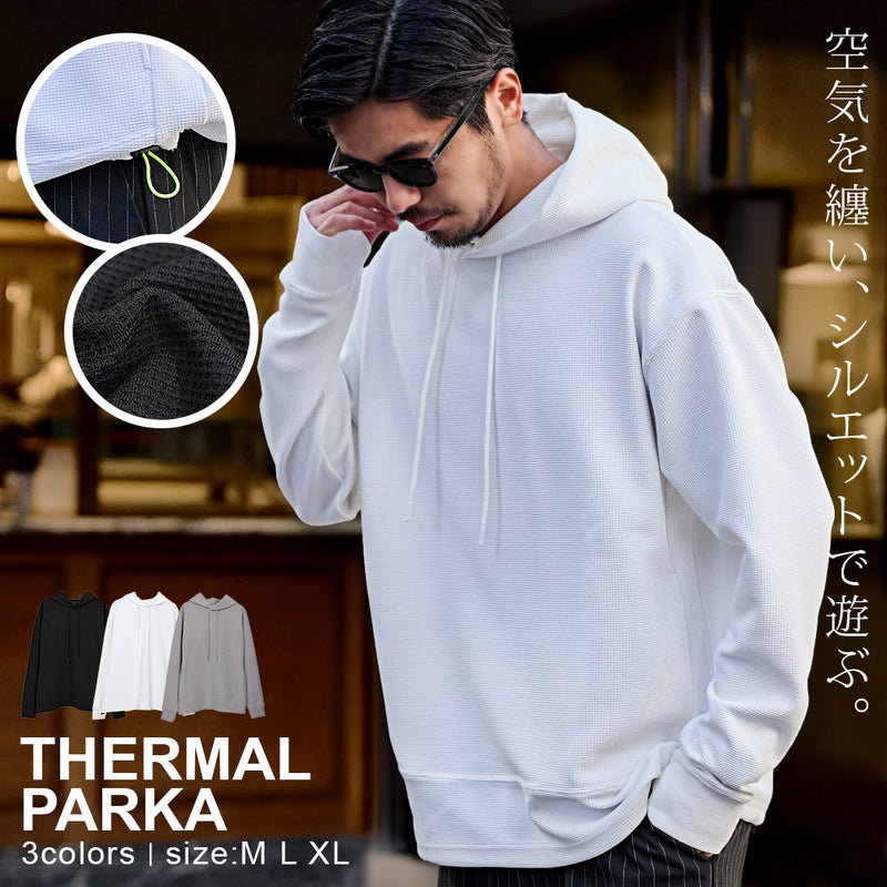 ワッフル状の凹凸が特徴のサーマル素材を使用。