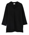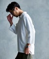 身幅にゆとりを持たせ、ドロップショルダーと広めの袖周りで構成。
