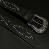 エッジに沿って打ち込まれた小粒のスタッズが、ベルト全体に立体感とリズムを生み出しまし、どこから見ても隙のない、完成されたデザインです。