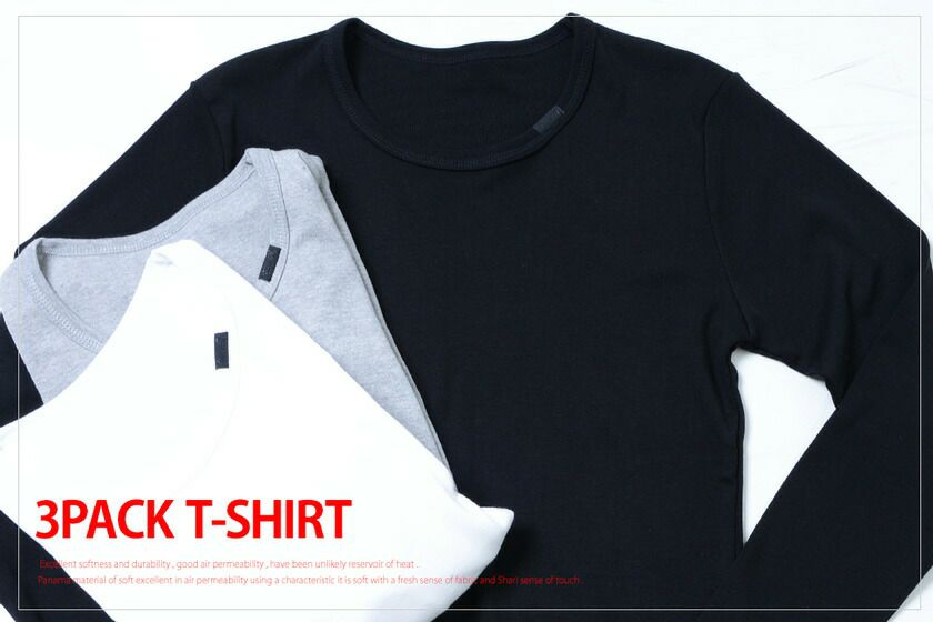 CavariA【キャバリア】3Pパック フライスクルーネック長袖Tシャツ/3枚セット