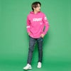 バイカラーのロゴプリントがお洒落なビッグシルエットのプルオーバーパーカーです。