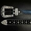 ラインストーン使いの大きなバックルがアクセントになったスタッズベルト。