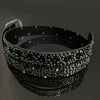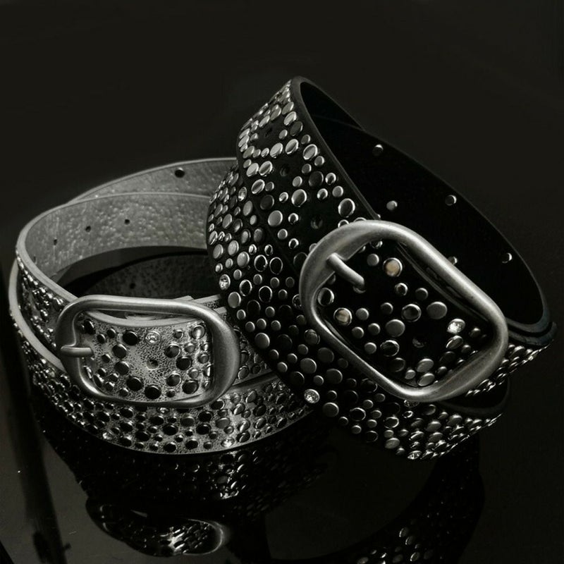大きさの異なるスタッズをランダムに配置し、さらにクリアなラインストーンを忍ばせた贅沢なデザイン。